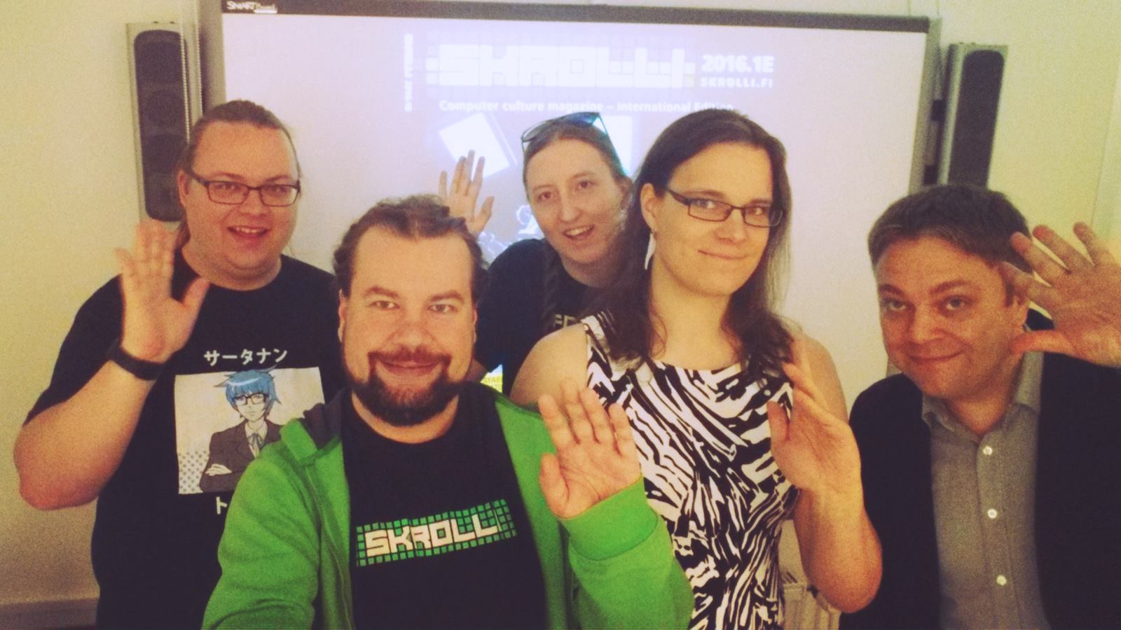 Kokous totesi Skrollin olevan hyvissä kantimissa ja leimasi kulkuluvat taas kuluvalle vuodelle. Kokouksessa valittiin myös Skrollin seuraava, sopivasti tehtävänkierrolla päivitetty hallitus – kuvassa alla: Nasu Viljanmaa (vas.), Anssi Kolehmainen, Jari Jaanto, Valhe Kouneli, Sakari Lönn sekä Ville-Matias Heikkilä (ei kuvassa).