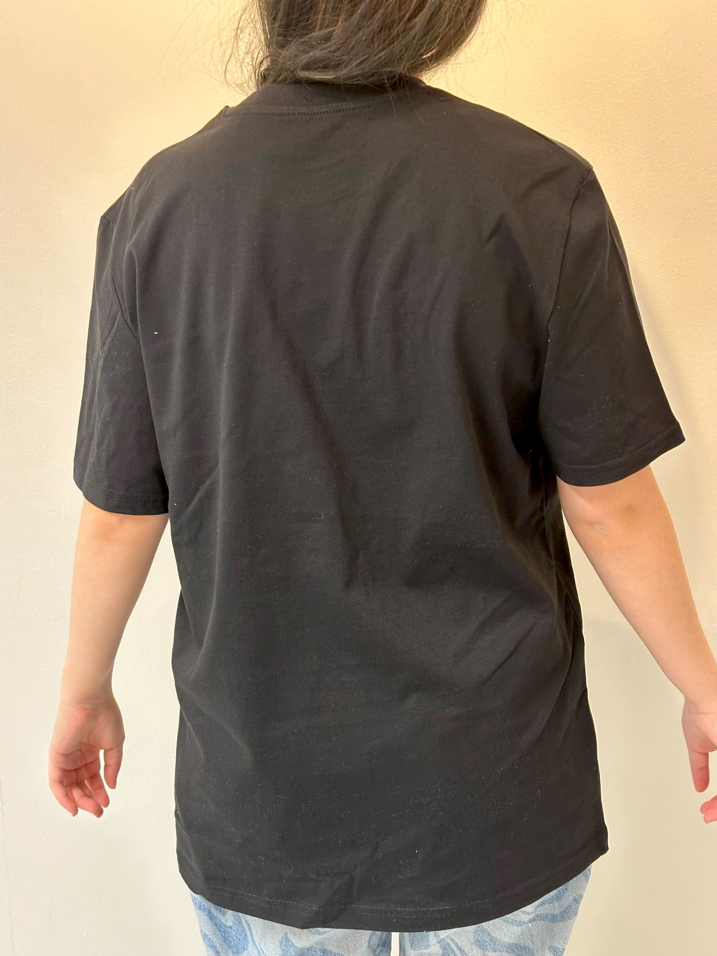 Skrolli T-paita, jossa edessä h7:n tekemää Ansi-taidetta. Paita on musta ja paidan etupuolella on silkkipainettu grafiikka.